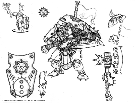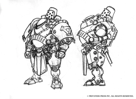 The Hard Part: The little guys have to count, you know, a little. When your action is focused on the near god-like power of warcasters, it can be tough to present a credible threat without the use of other heavy hitters. Stryker and Magnus can mow down large groups of common soldiers, but it’s important to point out that with enough numbers or with the right support, those common soldiers can really ruin a warcaster’s day. It’s nice to have Khador as my primary antagonist in these novels, because the Reds don’t do anything small-scale. They field troops that can be a serious thorn in a warcaster’s side without having to throw an entire regiment at him. This week’s mini-excerpt and art features just one of these elite Khadoran killers.