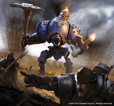 The Grenadier swung its mattock at a Winter Guard officer locked in a saber duel with a Resistance soldier. The pick blade of the oversized weapon struck the Khadoran in the back, passed completely through his body, and burst from his chest in a spray of blood. A slight pulse of irritation flowing back through the warjack’s connection with Magnus as the Grenadier hoisted the dead soldier from the ground, now pinned to its weapon, and shook the corpse free like a man trying to dislodge a bit of trash from the bottom of his shoe.