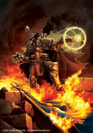 Stryker was a trusted advisor and friend to the former king of Cygnar, Leto Raelthorne, having helped this man secure his throne. Fifteen years later, when the king abdicated the throne to his nephew Julius to end a devastating civil war, Stryker found himself an outsider in the new king’s council. Julius sees Stryker as a remnant of his uncle’s rule, a worthy general and weapon in the army’s arsenal but not the king’s champion. Julius put his trust in Asheth Magnus instead, a formerly exiled warcaster who had once supported Leto’s brother, the tyrant Vinter Raelthorne IV, before helping Julius secure his throne. Stryker and Magnus have a long and troubled history and the restoration of a man Stryker still views as a criminal further strains his relationship with the new king.